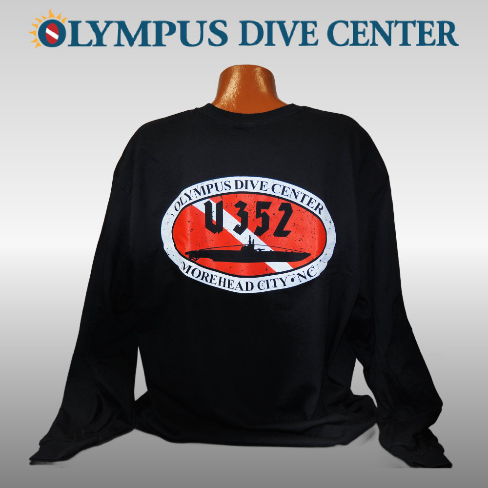 The U-352 logo shirt is the epitome of dive shirts. It features the U-352 logo on the back and the Olympus Dive Center logo on the front. This long sleeve shirt is made out of 100% pre-shrunk cotton and will be your new favorite dive shirt!